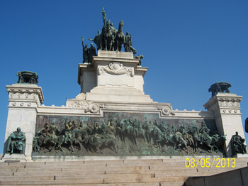 為了紀念巴西發展的歷史,突出不同國家、不同種族的人民對巴西的貢獻,市政府在最面向議會大廈、背朝中央公園的市中心位置,開辟綠地,塑造了開拓者雕像群雕。它在車水馬龍的兩條干道之間,是圣保羅著名的旅游景點之一。  經過一個多小時的車程,我們懷著興奮的心情抵達了巴西最大城市圣保羅市的外港——桑托斯。桑托斯這條美麗細長的C形海岸線,勾起了大家出海的欲望……